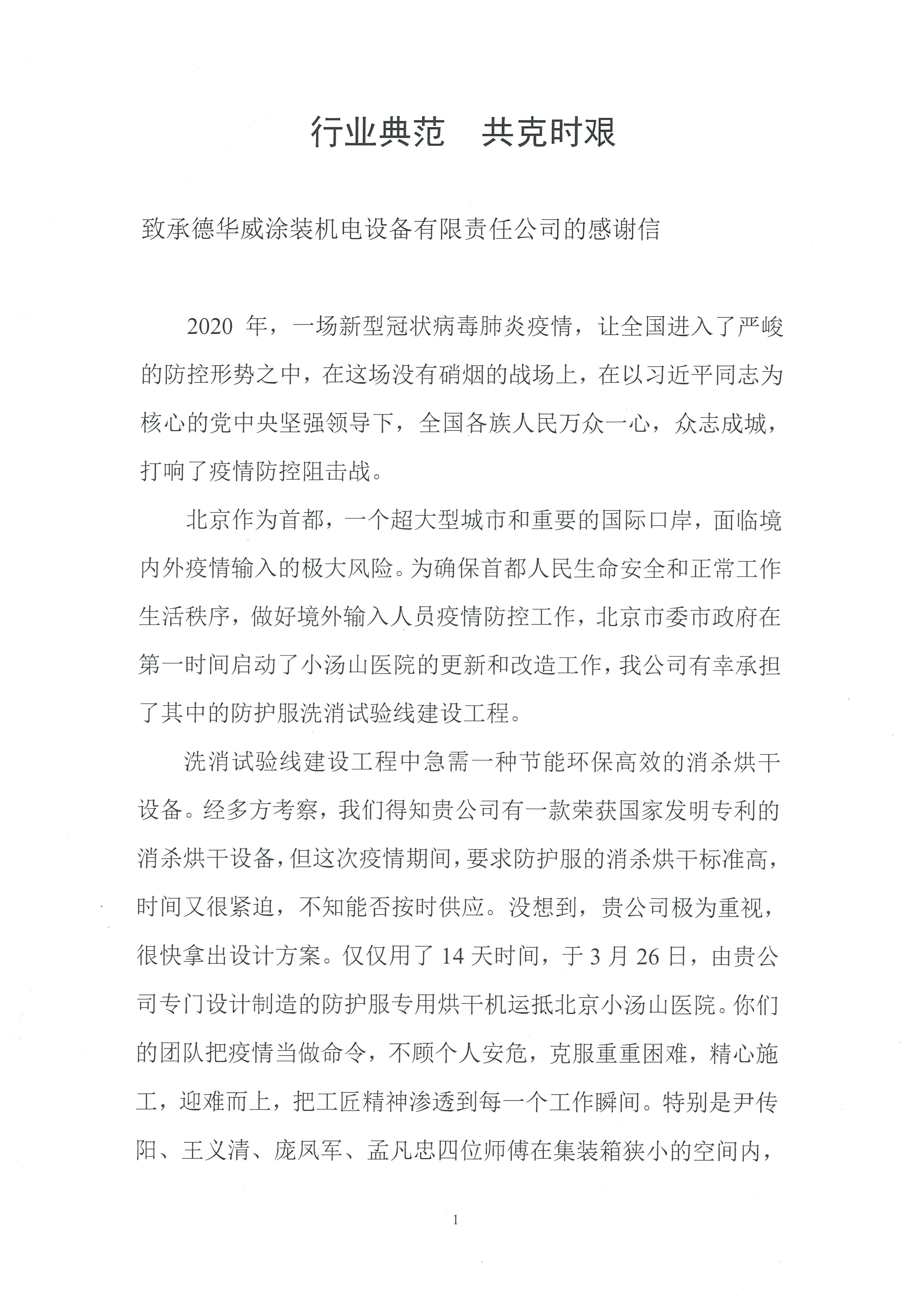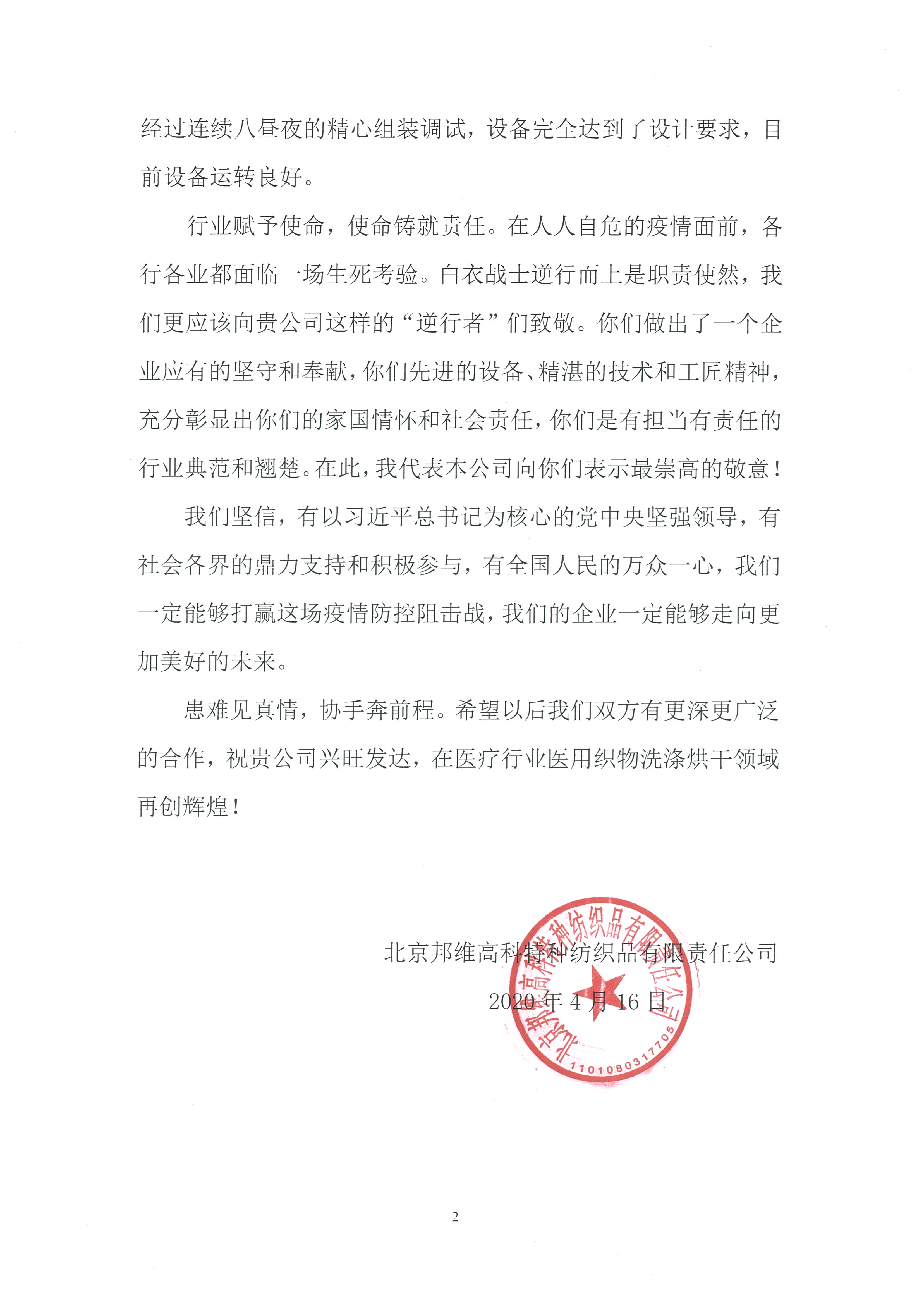 行業(yè)典范 共克時(shí)艱(北京幫維高科特種紡織品有限責(zé)任公司感謝信)